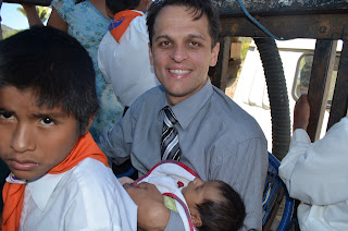 What a WONDERFUL and BLESSED day!! Another high Sabbath indeed! Last night we had the last evening of meetings at the base. We got home almost at midnight but had such a blessed experience. The service went very well. I mentioned in my blog yesterday my amazement at God's blessings in moving in the hearts of 11 soldiers who decided to be baptized on Thursday night. Well, last night and today, The Lord really blew me away! When the call was made last night for baptism, not only did those 11 come forward that had previously made the decision, but 17 more joined them up front!! That's 28 in total! Did you read that?? 28! That's just under half of all the soldiers that attended the meetings! Is God amazing or what??!! We broke up into small prayer groups with the soldiers and spent some time praying with each other and getting to know one another. Then we ate the refreshments in our little groups. It was very nice! And we made many new friends. Really a wonderful experience. But the icing on the cake was seeing these 28 individuals baptized this morning!! We made a baptistery out of a table turned upside down, boarded on the sides and a piece of plastic inside to hold the water. The deaconesses decorated it beautifully with cloth and flowers. We had a very special service, very reverent and memorable. All of the children and staff from Familia Feliz had special music. The soldiers really liked that. Then we all had potluck together...all 200 of us! :). It was a great fellowship meal.